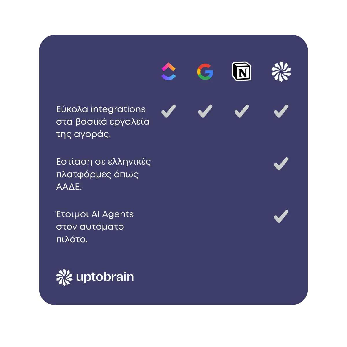 Εύκολη σύνδεση με τα βασικά εργαλεία της αγοράς (Google, Notion κ.α.)